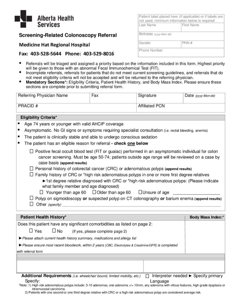 We work with Medicine Hat and surrounding area family physicians who send a referral to us for you to have a colonoscopy done after a FIT test is positive or if surveillance is needed. We offer screening colonoscopy services in Medicine Hat and Brooks.